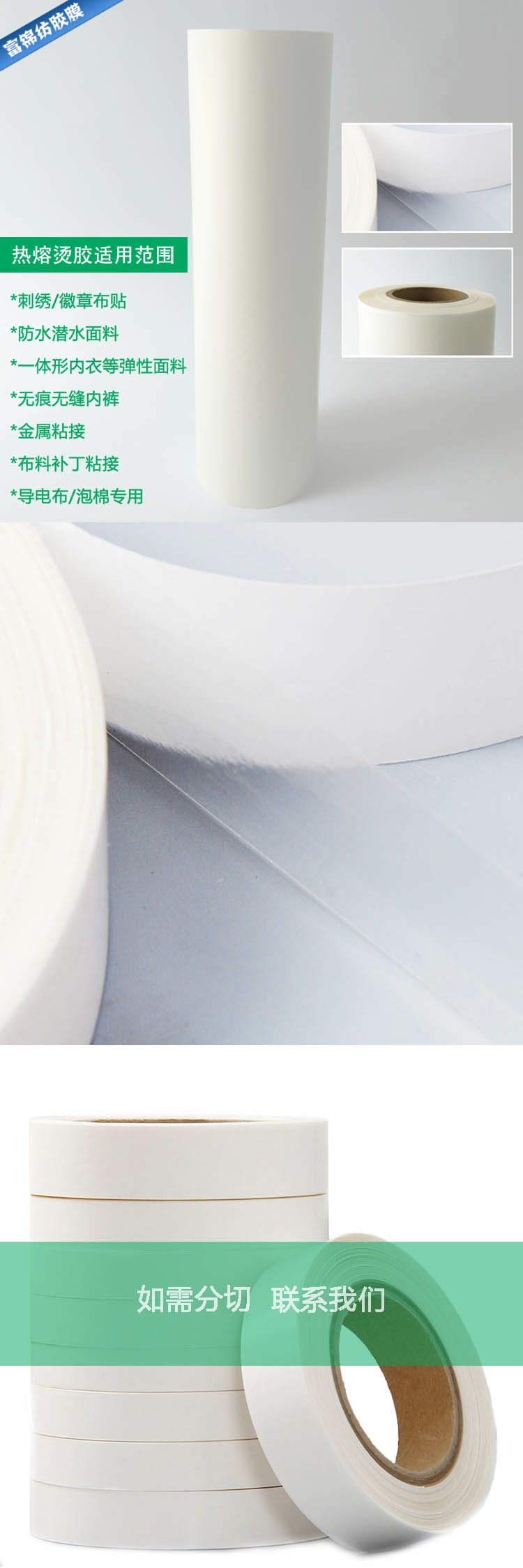 2、紡織、服裝面料、皮料復合用熱熔膠膜、熱熔膠網(wǎng)膜、彈力;