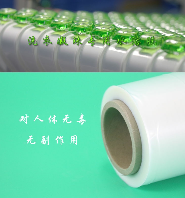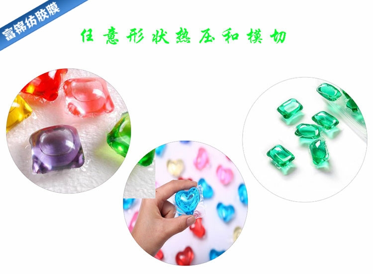 近兩年市面上流行一種洗衣凝珠,它是一種PVA水溶薄膜包裝的洗衣液,看起來就是一顆水珠狀物體,在入水里0.5分鐘開始溶解,10分鐘內(nèi)完全溶解于洗衣桶中,常溫下無水環(huán)境下不溶解不滲漏,這種貌美的凝珠包裝薄膜是綠色環(huán)保,安全無毒,可完全降解,全無殘留,對(duì)人無害,不會(huì)污染環(huán)境,完全無后顧之憂。洗衣凝珠用PVA水溶膜包裝,采用針對(duì)性配方,具有透明度高,拉伸強(qiáng)度大,熱封性好,冷水溶解完全無殘留之特性。