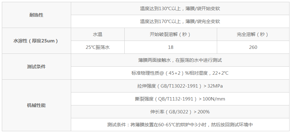 包裝水溶膜0.025mm常溫水溶膜測試表
